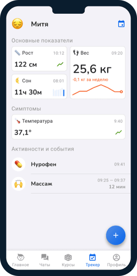 Eжедневно отмечай важные события и симптомы и получай полезные советы, лайфхаки и секреты в области детского развития и воспитания