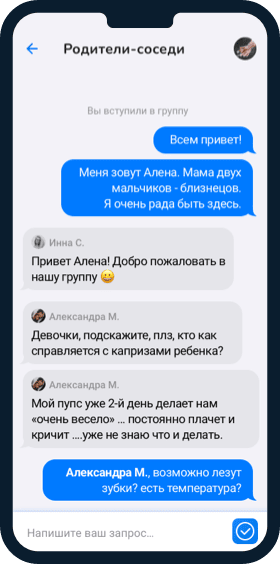 Общайся с единомышленниками и получай советы от опытных родителей и профессиональные рекомендации от профильных специалистов (детских психологов, педагогов, диетологов и врачей) и независимых консультантов